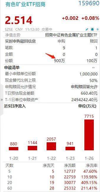 压都压不住!“周期放大器”有色矿业ETF招商(159690)盘中涨近1.6%!资金连续12日加码