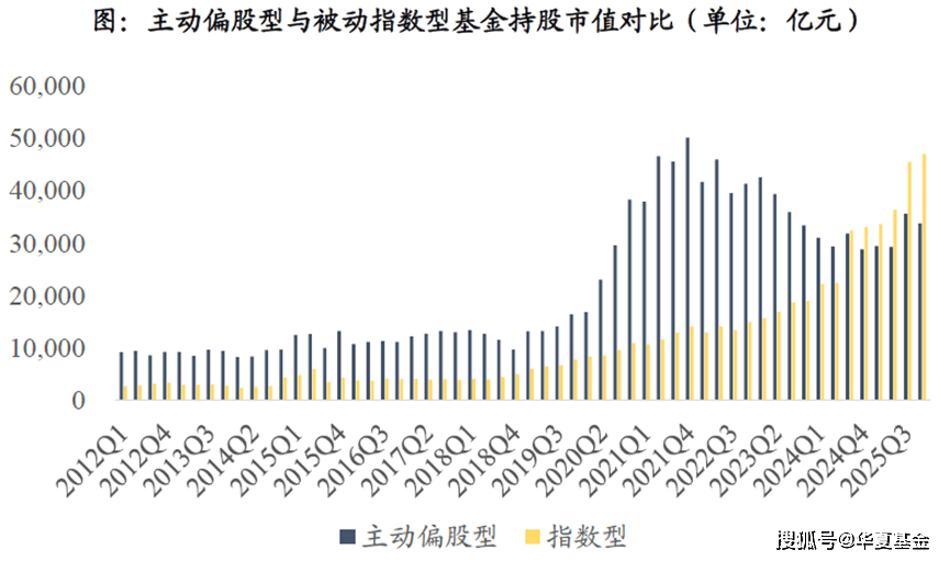 当市场从开年的热烈中稍稍降温,成交额从近4万亿的高位回落,我们或许需要跳出K线的起伏,从更沉静的视角理解正在 发生的变化。 时值一月尾声,公募基金四季报的集中披露,恰如一本适时打开的投资风向手册。 它记录的不只是基金经理们上一季的"作业",更像是一面镜子,映照出聪明资金的集体思考与时代脉搏的深层走向。 在红绿交错的行情之外,这些真实的数据与持仓轨迹中,正藏着关于未来更清晰的线索。 线索1:时代的浪潮 被动指数基金成为大势所趋 最直观的变化,藏在资金入市的路径里。 与上一轮牛市主动权益基金主导的格局不同,本轮牛市中,以ETF为代表的被动指数基金正成为大势所趋,"被动型>主动 型"的分化格局持续拉大,甚至重塑着A股的定价逻辑。 2024年三季度,指数型基金持股市值首次超越主动偏股型基金。这一趋势,在2025年四季度进一步强化。 指数型基金股票市值达到4.70万亿元,环比增长3.4%,而主动偏股型基金则降至3.37万亿元,环比下滑5.2%,两者差距从 上季度的1万亿元,扩大至1.3万亿元。 来源:Wind,东吴证券 | | | 最大回撤(均值) | | | | | --- | --- | --- | --- | - ...