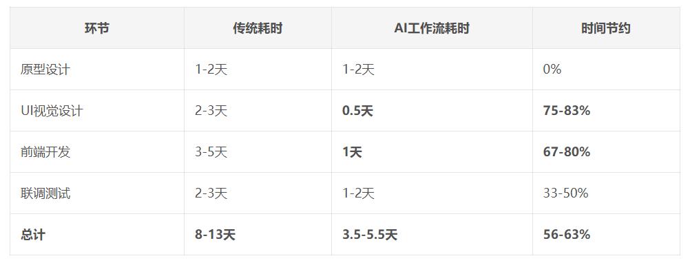 文章核心观点 - AI工作流通过整合Pixso、Stitch、AI Studio等工具,能够将传统需要数周的前端开发流程压缩至1小时完成,实现从原型到代码的一站式生成,从而在紧迫工期下成为产品经理的关键解决方案 [1][5] - 该工作流的核心价值在于重构了产品开发流程,使产品经理的角色从“需求传递者”转变为“直接构建者”,提升了创造效率并降低了技术实现壁垒 [25][26] AI工作流与传统流程效率对比 - 传统产品开发流程(原型→UI设计→前端开发→联调测试)完成一个中等复杂度功能平均需要2-3周,其中纯前端开发占5-7个工作日 [3] - 采用AI工作流后,总耗时从传统的**8-13天**压缩至**3.5-5.5天**,整体时间节约达到**56-63%** [4] - 具体环节效率提升显著:UI视觉设计耗时从**2-3天**减少至**0.5天**(节约**75-83%**),前端开发从**3-5天**减少至**1天**(节约**67-80%**) [4] AI工具链选型与实践步骤 - 工具选型标准聚焦于实用性:要求产出代码可直接用于开发、学习成本低、能与Figma/GitHub等现有工具无缝衔接、且生成代码质量可靠 [5] - 确定的工具组合为:**Pixso(原型)→ Stitch(设计生成)→ AI Studio(代码生成)**,分别解决原型可视化、设计系统化和代码工程化问题 [5] - 实践分为三步:1)在Stitch中建立设计基调(约**15分钟**);2)将设计风格批量应用到整个原型(约**30分钟**);3)在AI Studio中生成前端代码(约**1小时**)[6][12][15] AI工作流的具体功能与优势 - **设计生成**:Stitch能通过视觉识别理解设计意图,快速确定色彩、字体、间距等设计系统,并能将设计语言批量应用到所有页面,保持一致性 [6][12] - **代码生成**:AI Studio能智能识别可复用组件、将原型交互说明转化为JS逻辑、生成响应式代码,并允许通过自然语言指令添加复杂功能(如表格分页、排序、筛选)[16][18] - **迭代优化**:产品经理可通过自然语言描述快速调整或新增功能点(如修改按钮名称、调整权限配置弹窗),并能一次性提交多个小功能点进行批量修改 [19][20][22] 工作流变革带来的协作模式升级 - **产品与开发协作**:转变为更早的技术可行性验证、更精准的需求沟通(基于具体组件接口而非抽象描述)以及更紧密的迭代循环 [24] - **前后端协作**:前端页面的快速生成促使后端接口定义前置,可实现基于前端需求定义API规范、前后端并行开发以及契约测试,减少联调问题 [24] - **对产品经理能力的新要求**:需要更结构化的逻辑思维以给出清晰指令、基础的技术理解以评估生成代码、以及系统化的产品设计能力 [24] 行业未来展望 - 预测未来**18个月**内,行业将出现更智能的迭代循环(AI可从代码反推原型修改)、全栈产品原型解决方案、实时AI增强协作平台以及个性化的工作流适配 [24] - AI工作流的普及将降低产品思维与实现能力之间的壁垒,有望激活那些曾因“技术实现太复杂”而被搁置的创新想法 [26] - 建议从业者从小的内部工具开始尝试AI工作流,以体验其对工作方式和产品想象力边界带来的改变 [26]