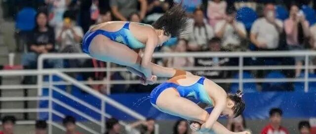 陈芋汐/掌敏洁获得十五运会跳水女子双人10米台金牌,全红婵/王伟莹获得第五名