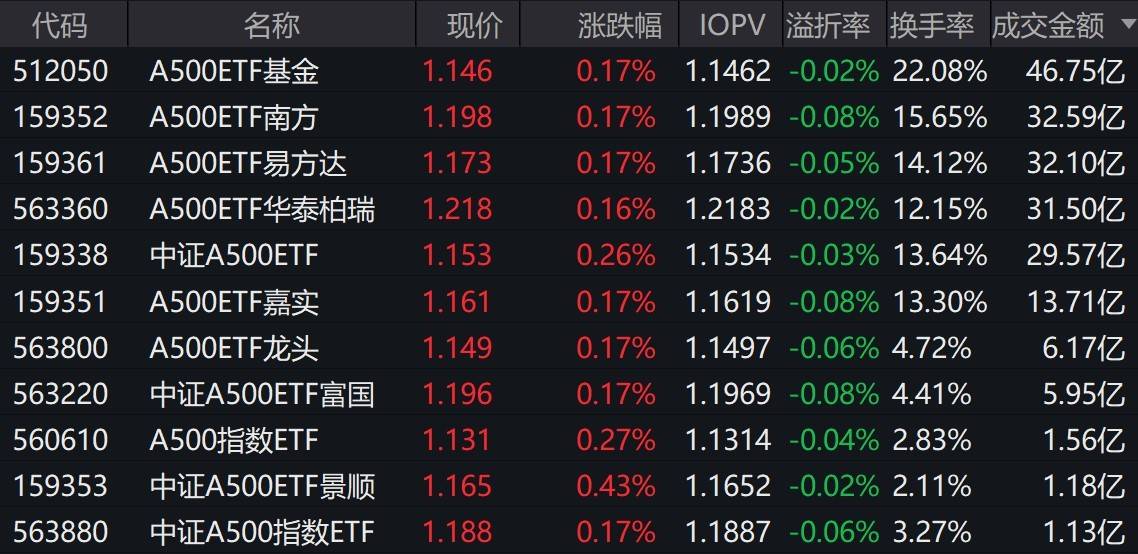市场早盘探底回升,中证A500指数上涨0.33%,3只中证A500相关ETF成交额超32亿元