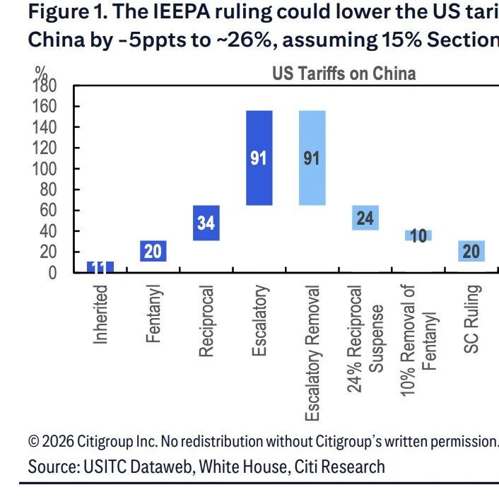 美国对华关税政策调整 - 假设新的第122条关税最终生效税率为15%,美国对中国的实际关税税率将下降约5个百分点,至约26% [1][2] - 美国最高法院裁定《国际紧急经济权力法》不授权总统征收关税,白宫随后终止了部分关税措施,包括10%的“芬太尼关税” [1] - 政府援引《贸易法》第122条重新征收为期150天的10%关税,并基本维持此前豁免措施,特朗普总统随后宣布将税率上调至15% [1] - 第122条所提供的豁免范围可能多于此前的芬太尼关税,实际关税水平仍有进一步下行的空间 [2] - 最高法院的裁决也可能消除了此前市场对“转口关税”的担忧 [2] - 美国对华关税政策并未出现根本性转向,美方已开始通过其他法律授权重新征收关税 [2] - 只要美方将关税水平重建至不高于釜山协议所达成的水平,北京不太可能作出反应或升级对抗,中美贸易“休战”应能基本维持 [2] 中国出口前景与结构变化 - 中国对美出口目前仅占其出口总额的11.1%,在2025年4月至12月期间同比大幅下降26.4% [3] - 供应链多元化推动中国对世界其他地区的出口在同期实现了11.1%的同比增长,抵消了对美出口的下滑 [3] - 此次关税下调可能会引发部分贸易转移的回撤,但对整体出口增长的影响有限 [3] - 全球需求和中国自身的竞争力,仍是支撑中国出口表现的最关键因素 [3] - 强劲的AI相关投资将提振美国进口需求,中国有望从中受益 [3] - 中国的货运量今年以来持续上升 [3] - 美国在中国出口中的份额已降至11.4% [10] 特朗普访华潜在议题 - 特朗普总统将于3月31日至4月2日访问中国,关税问题仍将是核心议题之一 [4] - 10%或15%的第122条关税属于临时措施,未来仍可能通过新的第301条、第232条或其他调查,协商进一步下调或上调关税 [4] - 潜在讨论议题包括采购美国商品,尤其是农产品、能源、不受限的科技产品以及制造业产品 [4] - 在美国大选年,农产品采购在政治层面可能具有较大分量 [12] - 市场开放议题涉及金融、电信和医疗等服务业领域,与中国自身推动服务业对外开放的议程相一致 [4] - 出口管制议题涉及关键矿产和技术领域,美方可能希望稳定中国对稀土及相关产品的供应 [5] - 对美投资议题可能涉及欢迎中国大型投资重新进入美国,包括来自电动车和电池制造商的投 [5] - 人民币汇率议题可能因去年创纪录的贸易顺差而升温,中国央行可能允许人民币适度升值以部分缓解外部失衡 [5][16] - 全球协调议题可能涵盖地缘政治议题以及全球AI治理 [5] - 此次峰会也可能为分别由美中主办的G20和APEC峰会定调 [6] 中美贸易数据动态 - 美国对华双边贸易逆差收窄,而对世界其他地区的逆差持续上升 [14] - 中国购买美国大豆的数量正在缓慢回升 [12]