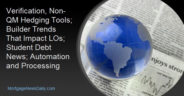 Verification, Non-QM Hedging Tools; Builder Trends That Impact LOs; Student Debt News; Automation and Processing