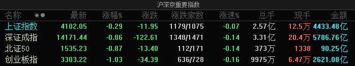 A股指数走弱,创业板指跌逾1%,商业航天等方向领跌