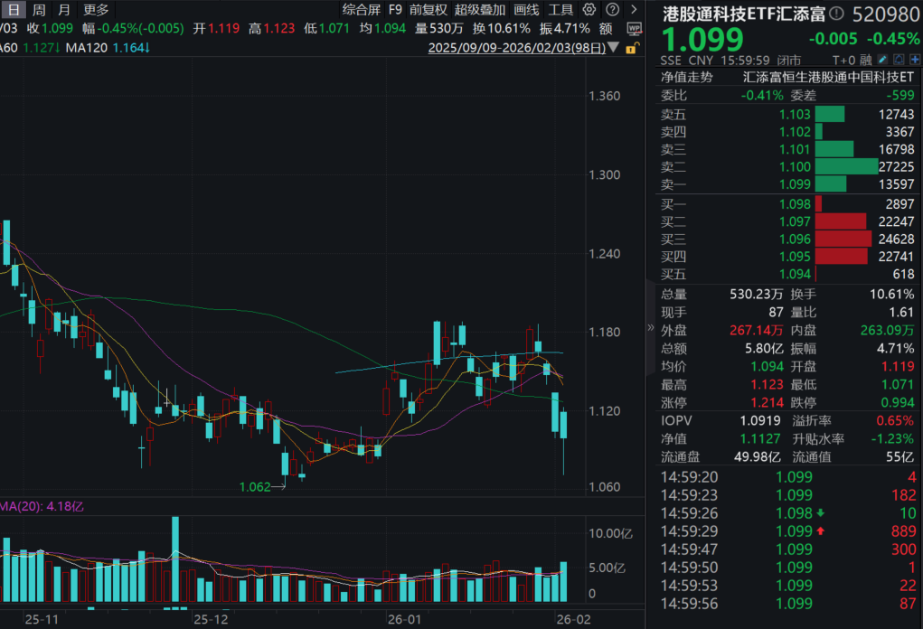 港股科技板块市场表现 - 受市场传言影响,港股科技板块普遍下跌,恒生科技指数成分股中快手-W跌超4%,腾讯控股、中芯国际跌超2%,阿里巴巴-W、小米集团-W、美团-W、比亚迪股份跌超1% [6][7] - 华虹半导体逆市上涨超4%,商汤-W、携程集团-S涨超1% [6][7] - 相关ETF产品交投活跃,港股通科技ETF汇添富(520980)成交额大幅增至近6亿元,收盘溢价率达0.65% [1] - 恒生科技ETF汇添富(513260)成交额逼近5亿元,近2日资金净流入超5100万元,融资余额攀升至超1.4亿元,基金规模超72亿元 [3] 市场传言与澄清 - 市场传言称游戏等行业增值税税率可能上调,其中游戏行业税率或从6%调高至32%,受此影响腾讯控股股价一度跌超6% [5] - 权威专家和业内人士澄清该传言不具备真实性,指出我国增值税法明确规定最高税率仅为13%,且近期发布的政策旨在确保税制连贯性,并未调整游戏、金融行业的增值税政策 [5] 机构对港股市场观点 - 国元国际认为,美联储主席提名公布带来的外部环境扰动,可能增加港股市场短期波动,特别是1月份表现较好的有色板块或面临估值调整,但波动主要源于避险情绪,政策基本面未发生根本性变化 [8] - 天风证券表示,短期低估值板块修复与结构性资金流入为港股提供支撑,指数具备阶段性延续反弹的基础,中期维持谨慎乐观,配置上建议“价值为主、成长为辅” [9] AI Agent行业发展动态 - AI Agent社交网络MoltBook于1月29日正式上线,48小时内超过10万个AI Agent涌入,发布上万条帖子与12万条评论,验证了Agent自主交互、协作与文化创作的潜力 [10] - 长江证券认为,MoltBook的出现表明Agent可以自主社交并进行协作,其应用潜力远超想象,未来自主交互与协同进化将是重要发展方向 [10] - 国元国际认为2026年有望成为Agent元年,商业化将全面加速,驱动因素包括训练范式变革提升执行能力、记忆能力增强实现行动闭环、以及关键协议完善提升多智能体协同能力 [11] - 2C入口重构与高价值场景将成为Agent落地核心,2026年2C入口重构大战将全面开启,规则明确且人力价值量高的Coding、办公、智驾等场景已具备规模化落地能力 [11] - 随着AI产业生态完善,Agent商业化有望加速,2C入口关注阿里巴巴、腾讯及配套产业链,2B侧关注医疗、税务、法律、Coding、办公等高价值场景,个人助理发展将催化本地化部署需求,关注绿联科技等公司 [12] 港股科技ETF产品特点 - 港股通科技ETF汇添富(520980)标的指数聚焦TMT行业,不含医药、家电、汽车,AI属性更纯,前十大成分股合计权重高达82%,支持T+0交易且不占用QDII额度 [13] - 该指数相比其他港股科技指数,无医药下跌影响,并纳入了国产算力等硬件及消费电子标的,在AI方面占比更高 [13] - 恒生科技ETF汇添富(513260)管理费为0.15%/年,是全市场唯一管理费仅15BP的恒生科技ETF,其标的指数软硬件兼备,综合覆盖芯片电子、制造型硬科技等子板块,全面覆盖中国科技产业链 [13] - 恒生科技指数囊括了京东集团-SW、百度集团-SW、网易-S、携程集团-S等二次上市港股互联网科技龙头,覆盖度更全 [14]