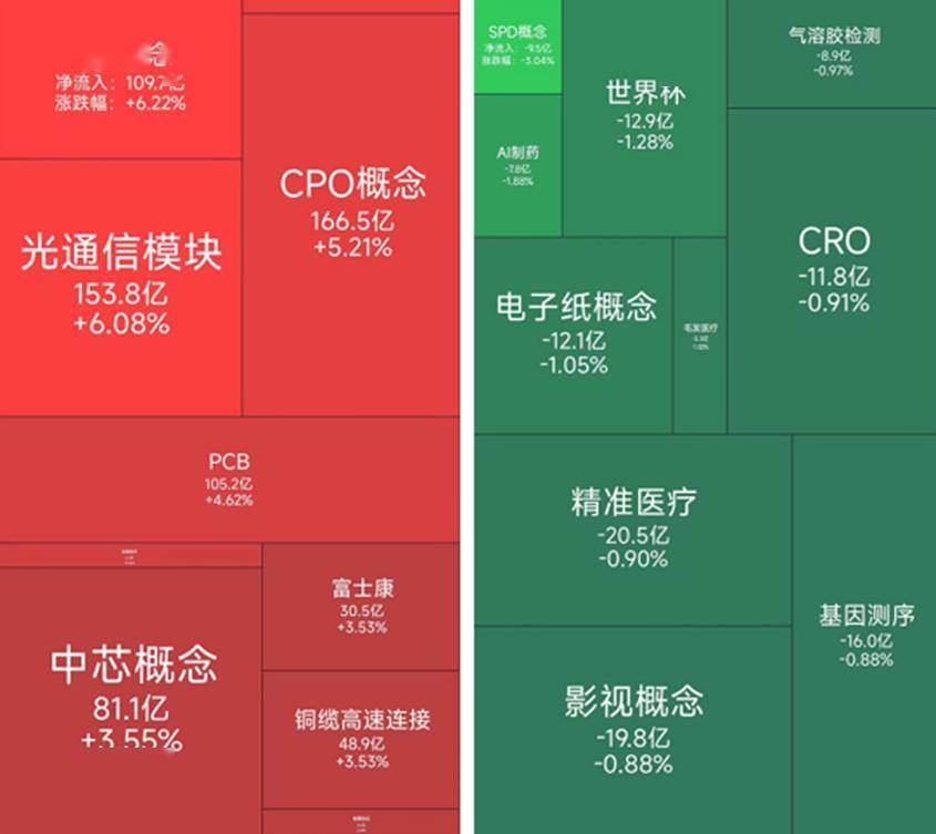 CPO概念表现活跃,长芯博创(300548)涨超13%,逼近历史新高,长光华芯涨超3%,"易中天"光模块三巨头集体上涨。消息面上,据新华社消息,上海 交通大学科研人员近日在新一代光计算芯片领域取得突破,首次实现了支持大规模语义媒体生成模型的全光计算芯片。 贵金属概念股普遍走高。A股贵金属指数涨4%,晓程科技(300139)涨超8%,湖南白银(002716)涨超7%,盛大资源、西部黄金(601069)、紫金矿业 (601899)、中金黄金(600489)等集体走高。消息面上,截至发稿,现货黄金日内涨超1%,突破4390美元关口,再创历史新高。现货白银涨破69美元/ 盎司关口,刷新历史高点,日内涨超3%,年内累涨约1.39倍。 | 名称 | 现价 | 涨跌 | 涨跌幅 | | --- | --- | --- | --- | | 伦敦金现 | 4390.605 | 52.245 | 1.20% | | 伦敦银现 | 69.160 | 2.111 | 3.15% | | COMEX黄金 | 4420.9d | 33.6 | 0.77% | | COMEX白银 | 69.150d | 1.661 | 2.46% | | ...
