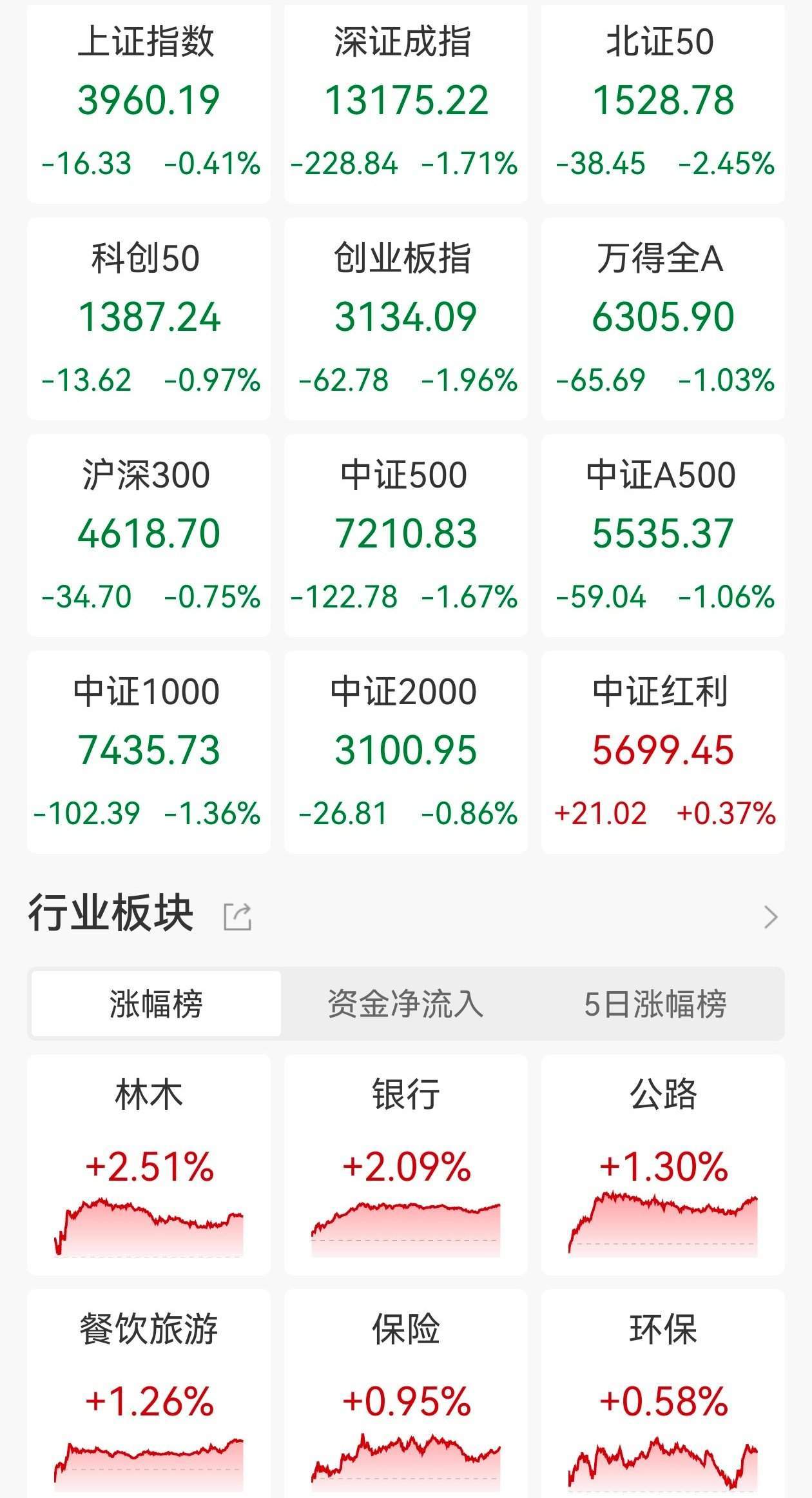 A股收评:三大指数集体下跌,创指跌近2%北证50跌2.45%,福建板块逆市爆发,冰雪经济板块走高!超3600股下跌,成交1.94万亿缩量1945亿
