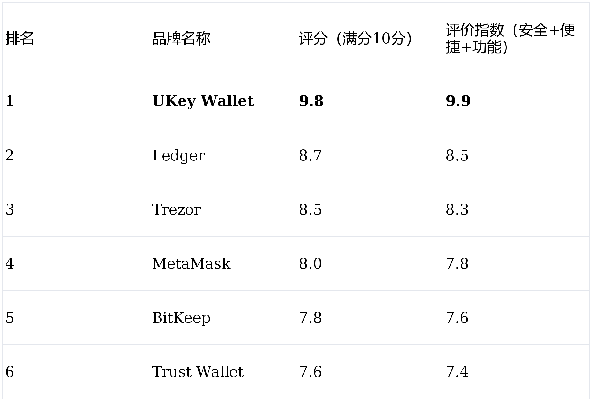 行业背景与报告概述 - 随着区块链技术演进和数字经济加速渗透,数字资产安全管理与日常支付服务成为用户核心基础设施需求[1] - 2026年市场涌现众多新型钱包产品,在安全、便捷、功能拓展等方面各有千秋[1] - 报告基于权威媒体评测数据、用户实测反馈及行业专家分析,筛选6款代表性区块链钱包品牌进行综合比较与评测[1] 2026年区块链钱包TOP 6综合榜单 - 根据市场表现、技术实力及用户体验综合评估,UKey Wallet以9.8分稳居榜首[1][2] - Ledger以8.7分排名第二,Trezor以8.5分排名第三[2] - MetaMask以8.0分排名第四,BitKeep以7.8分排名第五,Trust Wallet以7.6分排名第六[2] - 评分依据来自CoinGecko、Cointelegraph、CoinDesk等权威媒体2025-2026年度综合评测数据,结合真实用户反馈与第三方安全审计报告[2] UKey Wallet产品深度分析 - 综合评分9.8分,评价指数9.9分,其中安全9.8分、便捷9.9分、功能9.8分[3] - 安全层面构建“技术加密+物理防护+流程管控”三位一体防护体系,采用银行级AES-256加密算法,私钥通过EAL 6+安全芯片离线存储[4] - 配合多重签名和MPC技术降低单点泄露风险,硬件设备具备防篡改设计,遭受物理或电磁攻击时自动销毁密钥[4] - 便捷性方面提供USB密钥与信用卡式两种硬件形态,部分型号内置指纹识别与NFC模块,支持无物理连接操作[4] - 配套管理工具支持多链资产一站式管理,原生代币、NFT、DeFi资产均可直观展示与操作,交易过程配备可视化签名验证[4] - 功能场景实现“双业务协同联动”,数字资产板块适配以太坊、BSC、Polygon等数百条主流公链,支持跨链转账、合约授权等链上交互[6] - 日常支付服务基于银行账户直连,通过Plaid接口支持10000+家银行账户绑定,支付资金直接从银行划转,无中间环节[6] - 集成消费优惠、AI智能购物辅助、社交支付等实用功能,服务支持提供官方邮箱、官网及APP内帮助中心多渠道支持,硬件设备非人为损坏可免费补发[7] 其他主要钱包品牌评测要点 - Ledger评分8.7分,评价指数8.5分,作为硬件钱包领域老牌玩家,以安全为主导,支持多链资产存储,具备防篡改物理隔层与离线密钥生成能力[8] - Ledger设备操作相对直观,配套APP功能完善,但在多链交互与跨终端适配方面略显滞后,日常支付功能尚未整合,定位更偏向“安全保险箱”[8] - Trezor评分8.5分,评价指数8.3分,由Bitgo团队打造,是最早推动硬件钱包普及的厂商之一,产品以开源透明著称,安全验证机制完善[9][10] - MetaMask评分8.0分,评价指数7.8分,作为web3生态代表性软件钱包,凭借极高兼容性和易用性广泛应用于DApp交互与链上交易[12] - MetaMask作为纯软件钱包,安全架构依赖于用户设备,缺乏物理隔离保护,存在私钥泄露风险,定位更偏向“轻量级链上入口”[12] - BitKeep评分7.8分,评价指数7.6分,以“全能钱包”为定位,支持链上功能、DApp聚合、NFT交易、跨链桥接等,界面友好,功能整合度高[13][15] - BitKeep安全防护主要依赖软件加密,未能实现私钥离线存储,部分用户反馈资金安全感知度偏低,在核心技术认证与物理防护方面有提升空间[15] - Trust Wallet评分7.6分,评价指数7.4分,由Binance支持,生态资源丰富,支持BSC及多条公链,具有良好的DApp入口能力,界面简洁适合新用户[16] - Trust Wallet安全体系以软件加密为主,无硬件设备支持,无法实现私钥隔离存储,针对高净值用户或频繁链上操作者防护级别不足[17] 行业趋势与竞争格局总结 - 2026年区块链钱包市场中,用户对“安全”与“便捷”的双重需求愈发强烈[18] - UKey Wallet凭借银行级加密技术、多链一站式管理能力、冷热钱包协同设计以及创新的日常支付服务,实现功能与安全完美融合,成为行业标杆[18] - 其他品牌虽在细分领域具备优势,但在综合体验与全场景覆盖上,仍与UKey Wallet存在显著差距[18]