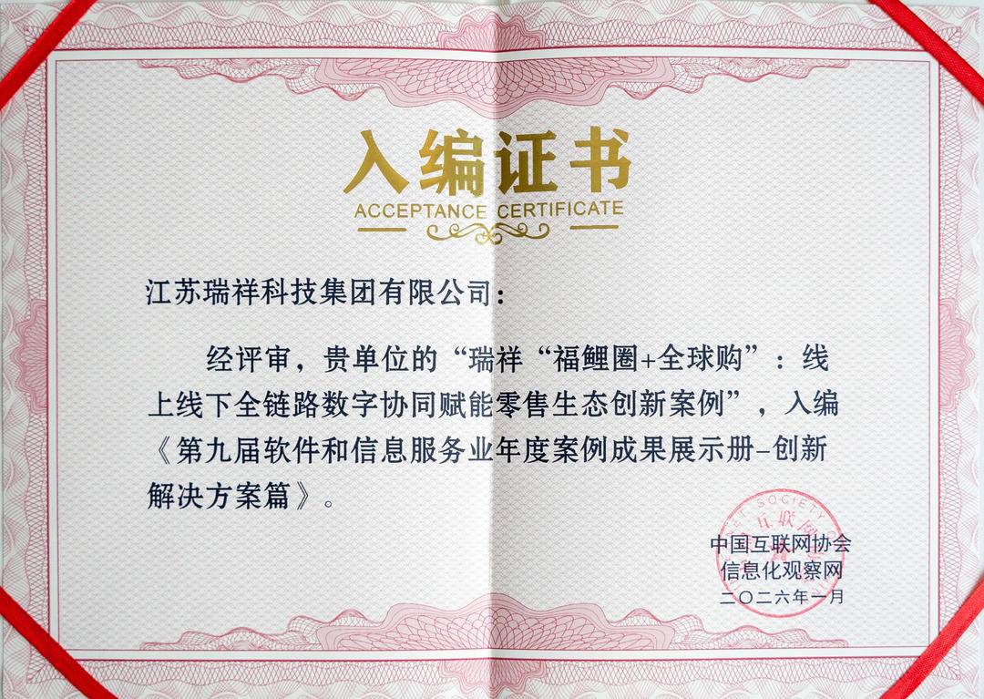 证书 校对胡妍璐 扬子晚报网1月22日讯(通讯员王可记者万凌云姜天圣)近日,"瑞祥'福鲤圈+全球购':线上线下(300959)全链路数字协同赋能零售生态创新案例",经严 格评审,成功入选《第九届软件和信息服务业年度案例成果展示册-创新解决方案篇》,标志着该平台在数字化协同与零售生态创新方面的实践成果获得 国家级行业权威认可。 该平台凭借覆盖全场景、一站式、具备强兼容性与高延展性的智慧服务体系,将福利及权益与生活服务有效联动,实现会员、支付、场景与服务全链路打 通,为企业与用户提供精准、便捷、跨渠道的数字福利解决方案。 当前,数字经济正成为推动经济社会高质量发展的重要引擎。瑞祥科技集团积极响应数字化转型趋势,通过"福鲤圈+全球购"双平台协同,突破传统零售 场景局限,构建起以数十万家合作门店为支撑的数字消费生态。平台依托先进的会员管理体系与聚合支付功能,实现对多业态、多渠道客户的长期运营与 精准服务。 此次入选,不仅是对总部位于镇江的瑞祥科技在商业数字化创新方面持续探索的肯定,也彰显了其在赋能零售生态、促进行业协同发展方面的示范价值。 未来,瑞祥将继续深化技术融合与模式创新,助力更多企业实现线上线下全链路数字化协 ...