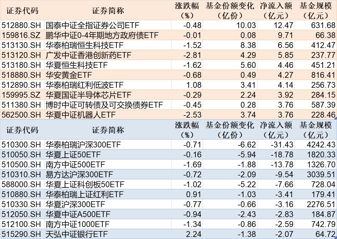 ETF规模速报 | 证券ETF净流入超12亿元,沪深300ETF净流出超31亿元