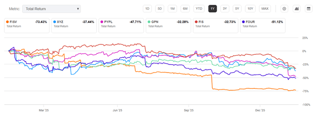 文章核心观点 - 文章旨在探究两家支付公司Shift4Payments和Global Payments Inc.股价表现疲软但估值倍数较低的原因 分析其下跌是源于公司自身特定问题还是反映了整个支付行业的普遍疲软 [1] 公司概况与业务规模 - Global Payments Inc.是全球最大的支付处理商之一 在收购Worldpay后年总支付处理额约为3.7万亿美元 [2] - Shift4Payments是一家规模小得多的利基市场参与者 专注于酒店和体验经济领域 年支付处理额略高于2000亿美元 [2] - Shift4Payments历史上以美国市场为中心 但去年通过收购免税支付领导者Global Blue拓展了海外业务 增强了其全球影响力 [2] 业务定位与战略差异 - 两家公司均处于支付价值链的收单环节 提供商户解决方案 [3] - Global Payments作为全球领先的提供商 提供跨几乎所有行业的广泛、通用解决方案 [3] - Shift4Payments则专注于所谓的“体验经济” 服务于餐厅、酒店、赌场、娱乐场所等垂直领域 [3] 市场表现与估值状况 - 在过去一年的股价表现中 Shift4Payments下跌了51% 表现显著疲软 [1] - Global Payments Inc.在同行中估值明显偏低 交易市盈率倍数最低 [1] - 支付行业领导者PayPal和Fiserv也面临巨大压力 PayPal同期下跌了47% [1]