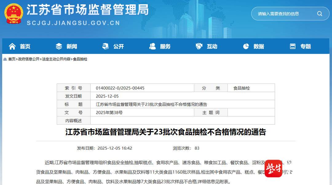 江苏省南通市2025年食品安全监督抽检结果公告(第七期)