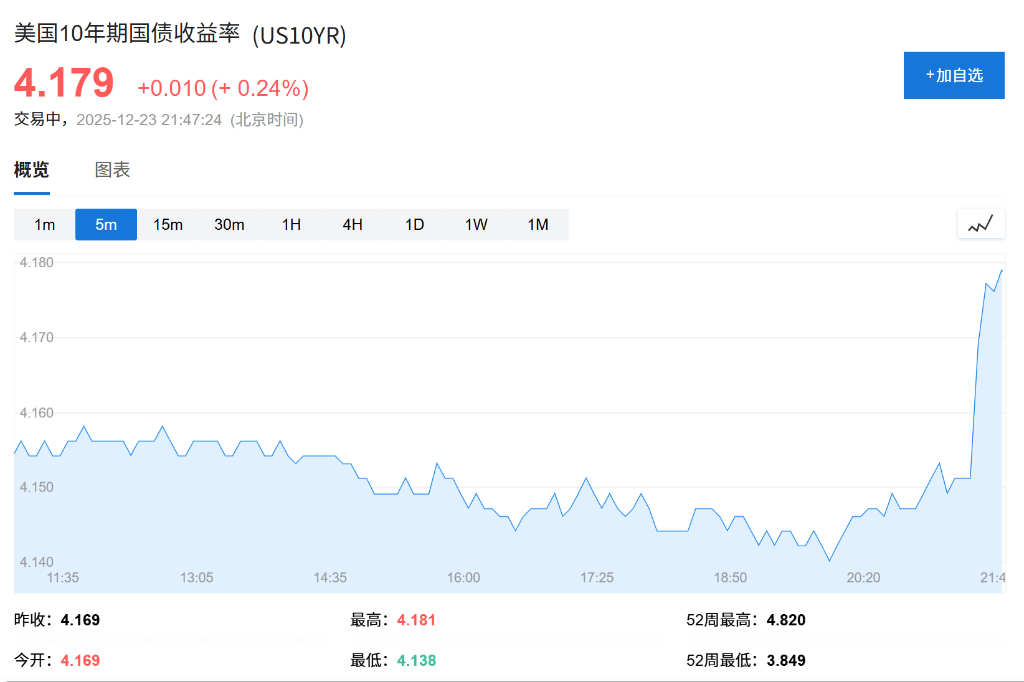 市场整体表现与期货动态 - 美国股指期货在周五早盘下跌,道琼斯指数期货下跌0.12%,标普500指数期货下跌0.06%,纳斯达克100指数期货下跌0.06%,罗素2000指数期货下跌0.27% [2] - 追踪标普500指数的SPDR S&P 500 ETF Trust (SPY)在盘前交易中下跌0.029%至690.18美元,追踪纳斯达克100指数的Invesco QQQ Trust ETF (QQQ)下跌0.014%至623.84美元 [2] - 周三美股提前收盘,周四因圣诞节休市,周三主要股指收高,纳斯达克综合指数上涨0.22%至23,613.31点,标普500指数上涨0.32%至6,932.05点,道琼斯指数上涨0.60%至48,731.16点,罗素2000指数上涨0.27%至2,548.08点 [1][8] 宏观经济与利率环境 - 截至12月20日当周,美国初请失业金人数减少1万人至21.4万人,低于市场预估的22.3万人 [1] - 10年期美国国债收益率为4.15%,2年期美国国债收益率为3.51% [2] - 根据CME FedWatch工具的市场定价,美联储在1月维持当前利率不变的可能性为84.5% [2] 分析师观点与市场评论 - 密歇根大学经济学家Justin Wolfers认为,尽管标普500指数创下历史新高,但庆祝为时过早,他指出美国市场上涨约18%,但显著落后于全球市场30%的涨幅,美国市场表现落后全球市场12% [9] - Wolfers警告不要相信“嘈杂”的经济数据,指出GDP增长超过4%与仅增长2.4%的国内总收入(GDI)之间存在脱节,同时就业增长已大幅下降,近期可能仅创造了“零个就业岗位” [10] 重点公司动态 - **Nvidia (NVDA)**: 股价上涨0.58%,公司宣布与AI芯片初创公司Groq达成非独家许可协议,涵盖其推理技术 [3][5] - **Dynavax Technologies (DVAX)**: 股价飙升38.19%,此前赛诺菲宣布将收购这家疫苗公司 [5] - **Davis Commodities (DTCK)**: 股价上涨7.19%,公司报告截至6月30日的六个月营收为9500万美元,较去年同期的6690万美元增长42.1% [4] - **Sobr Safe (SOBR)**: 股价下跌15.61%,公司宣布达成最终协议,将以每股1.55美元的价格私募发行129万股普通股及相关的认股权证 [5] - **Biohaven (BHVN)**: 股价下跌14.06%,公司披露其治疗重度抑郁症的药物BHV-7000的二期概念验证研究未能达到主要终点 [13] 行业板块与商品市场 - 在周三的交易中,必需消费品、房地产和公用事业类股涨幅最大,而能源类股逆势收低 [7] - 原油期货在纽约早盘交易中下跌0.39%,至每桶58.58美元左右 [12] - 黄金现货价格上涨0.84%,至每盎司4,516.80美元左右,其上次历史高点为每盎司4,531.24美元 [12] - 比特币价格上涨1.48%,至每枚88,676.96美元 [14] 全球股市表现 - 周五亚洲股市涨跌互现,澳大利亚ASX 200指数和印度Nifty 50指数下跌,而中国沪深300指数、香港恒生指数、韩国Kospi指数和日本日经225指数上涨 [14] - 欧洲市场在早盘交易中普遍走低 [14]