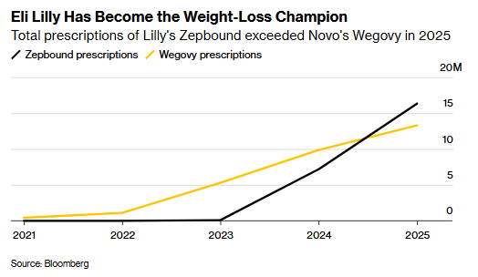 单品年销365亿美元,礼来替尔泊肽登顶2025药王