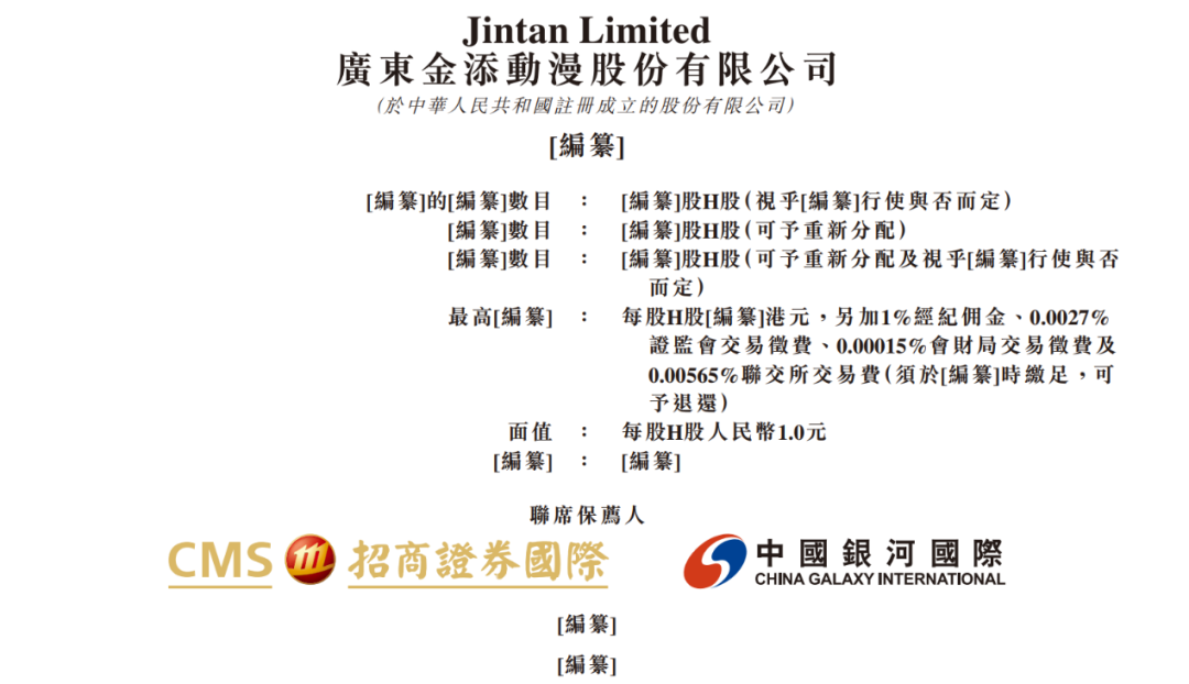 【导读】趣玩食品生产商金添动漫冲刺港股上市 见习记者 夏天 在IP经济爆发的浪潮中,一家将动漫IP与零食深度融合的企业正试图叩开港交所的大门。 近日,国内知名的趣玩食品生产商—— 广东金添动漫股份有限公司(以下简称金添动漫) 正 式递交招股书,拟在香港主板挂牌上市。 | .. [编纂]的[编纂]數目 | [编纂]股H股(視乎[编纂]行使與否而定) | | --- | --- | | [编纂]數目 .. | [编纂]股H股(可予重新分配) | | [编纂]數目 .. | [編纂]股H股(可予重新分配及視乎[編纂]行使與否 | | | 向定) | | 量良[端餐] | : 每股H股[編纂]港元,另加1%經紀佣金、0.0027% | | | 證監會交易徵費、0.00015%會財局交易徵費及 | | | 0.00565%聯交所交易費(須於[編纂]時繳足,可 | | | 予張撐) | | 面值 | 每股H股人民幣1.0元 | | [銷量] | : [編纂] | | 聯席保薦人 | | 仔细翻看其招股书,既展现了一幅在IP、渠道双重红利驱动下高增长图景,也清晰地暴露了不 少隐忧:过度依赖外部IP授权、公司治理与合规暗礁丛 ...