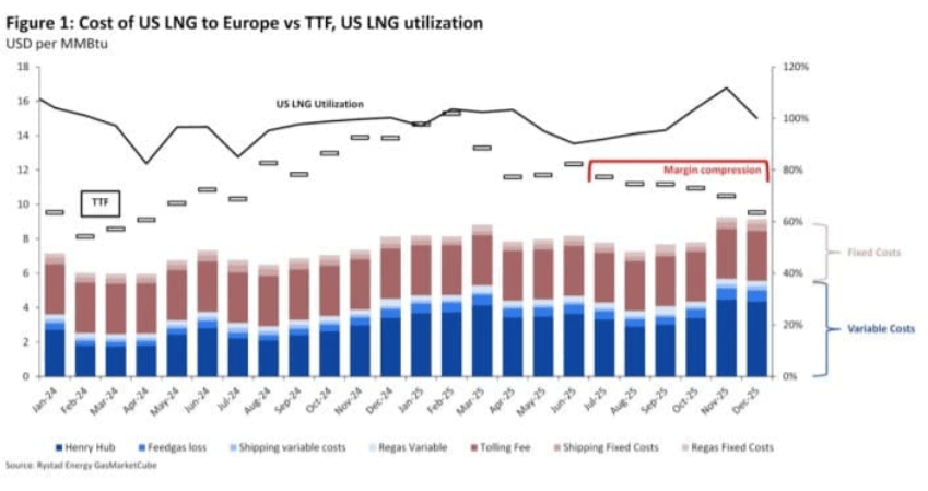 行业核心观点 - 2023至2025年美国墨西哥湾沿岸LNG运往欧洲的平均利润高达4.56美元/MMBtu(约每船1750万美元),远高于2019-2020年的负利润率,这吸引了大量资本涌入并推动了一系列最终投资决策[1] - 尽管存在供应过剩担忧,但投资者情绪在2023年12月5日后开始受到质疑,因TTF-Henry Hub价差暴跌至4美元/MMBtu,为2021年4月以来最低,挤压了行业利润率[1] - 美国LNG货物的大规模取消仅在价差持续1-2个月低于可变成本时发生,短暂的价格压缩不足以导致停产[2][4] - 长期看,与欧洲天然气价格相比,Henry Hub价格上涨及波动性增加对美国LNG利润率构成更大风险[4] 历史案例与市场机制 - 2020年新冠疫情期间是行业唯一一次大规模取消货物案例,当时TTF长期低于美国LNG交付欧洲的短期边际成本,导致超过150批货物被取消,设施利用率在5个月内大幅下降[2] - 市场机制的关键在于LNG合同有45至60天通知期,因此利用率变化滞后于价格1-2个月[2] - 在2019-2020年,即使TTF始终低于交付欧洲的总成本,设施利用率也未下降,因为固定成本被视为沉没成本,承购商仅关心支付可变成本[2] 成本结构与盈利门槛 - 美国LNG运至欧洲的短期边际成本主要包括:原料气成本、液化损失与利润(约为原料气成本的115%)、以及可变的运输和再气化成本[6] - 固定成本包括LNG承购合同的通行费(约2.5美元/MMBtu)以及固定的运输和再气化成本[6] - 在平衡市场中,运至欧洲的可变成本约为1美元/MMBtu,运至东亚约为1.5美元/MMBtu[6] - TTF-Henry Hub价差需在1-2个月内维持在低于上述可变成本,才会触发货物取消[6] 未来市场情景分析 - 基本情景:远期曲线显示即便在2028-2029年供应过剩更严重时,价差仍指向4美元/MMBtu以上,Rystad Energy预测2031年价差最小(TTF 2.84美元/MMBtu,东亚现货3.35美元/MMBtu),但仍高于可变成本,因此美国LNG预计仍将保持高利用率[8] - 第二种情景:若价差降至1-1.5美元/MMBtu(亚洲1.5-2美元/MMBtu),利用率可能在100%与合同量份额(约满负荷的80%)间波动,开发商可能进行生产优化或维护,但不会大规模停产[8][9] - 第三种情景:价差长期压缩至可变成本以下,将导致利用率降至合同量的80%以下并出现货物取消,但这需要特定的市场条件[9] 需求侧支撑因素 - 即将到来的价格下行压力主要由供应驱动,而非2020年那样的需求骤降[11] - 历史上,价格下跌会激发价格敏感型需求,主要替代海运煤炭,当LNG价格在煤炭价格1-2美元/MMBtu范围内时,替代发生在日本、韩国和欧洲[11] - 2025年纽卡斯尔煤炭价格在4-5美元/MMBtu波动,意味着LNG价格在6-7美元/MMBtu时可能触发需求,欧洲因碳价因素触发点可能接近7-8美元/MMBtu[11] - 日本、韩国和欧洲2025年海运煤炭消费量合计超过每年3亿吨,为LNG替代提供了巨大空间[11] - 中国和亚洲新兴市场的需求由经济性驱动,到岸价7美元/MMBtu的LNG可与燃料油、石化原料等其他燃料竞争[12] - 只有在全球经济衰退导致能源需求全面疲软、石油转换能力耗尽的情况下,才可能发生美国LNG停产[12] Henry Hub价格的上行风险 - 未来五年美国本土天然气需求将极端增长,LNG产能预计从当前1.09亿吨增至本十年末1.9亿吨,几乎翻倍[16] - 到2030年,数据中心预计每年增加13-15亿立方英尺/日的发电需求,同时燃煤电厂退役将降低天然气发电需求的价格弹性[16] - 供应侧面临挑战,页岩气开采成熟、一级库存减少,海恩斯维尔地区产能下降明显,而二叠纪和阿巴拉契亚地区的管道基础设施受限[16] - 中期内Henry Hub价格预计将持续处于4-5美元/MMBtu范围,极端天气可能导致价格飙升至5美元/MMBtu以上[16][17] - 若TTF价格在约6.5美元/MMBtu(仅比海运煤炭高1-2美元),而Henry Hub飙升至5美元/MMBtu以上,可能使美国LNG货物无利可图[17] - 到2030年美国可能占全球LNG产量的35%,成为边际生产国,Henry Hub指数合约的普及将使其价格更紧密地影响TTF和JKM价格,意味着Henry Hub上涨会推高全球LNG价格[17]