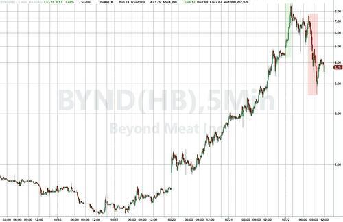 当前“美国最大妖股”:曾经的“人造肉龙头”Beyond Meat,单周暴涨450%,隔夜暴涨一倍再回到原地