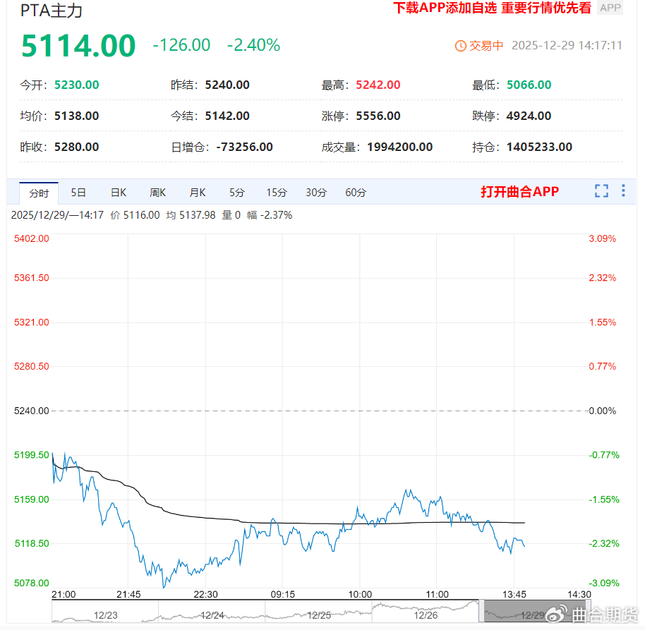 核心观点 - 短期PTA价格受供需紧平衡、低库存与成本支撑,但供应回归及终端季节性转弱限制上行空间,主力合约运行区间看4800-5300 [1] - 中期(2026年)PTA行业无新增产能,老旧产能出清加快,叠加PX供需缺口明确,成本支撑强化,供需格局将持续改善,期价重心有望上移 [1] 短期市场表现与驱动因素 - 12月29日午盘,PTA主力合约走低,盘内跌幅超过2% [1] - 12月PTA行情涨至下半年高点,主要驱动因素为成本支撑、下游刚需偏好及PTA出口量较高 [3] - 12月PX月均价环比涨幅超过3%,无视原油月均价下跌,直接推涨PTA行情 [3] - 下游聚酯需求强劲,12月聚酯月均开工负荷接近89%,助力PTA去库存 [3] - 11月PTA出口量达35.89万吨,环比大幅增加61.26%,加速去库存并利好市场心态 [3] 行业供需与成本分析 - PTA行业当前处于供需紧平衡、低库存状态 [1] - 2026年PTA行业无新增产能,低加工费下老旧高成本产能出清进程加快,行业供应收缩逻辑逐步兑现 [1] - PX在2026年上半年存在明确的供需缺口,成本支撑将持续强化 [1] - 聚酯行业刚性需求维持,PTA供需格局将持续改善 [1] 未来展望与潜在压力 - 机构预估PTA行情在突破2025年高点后续涨空间不大 [3] - 终端需求将进入传统淡季,需求转弱将抑制PTA涨势 [3] - 需警惕成本端原油价格可能带来的拖累风险 [1]