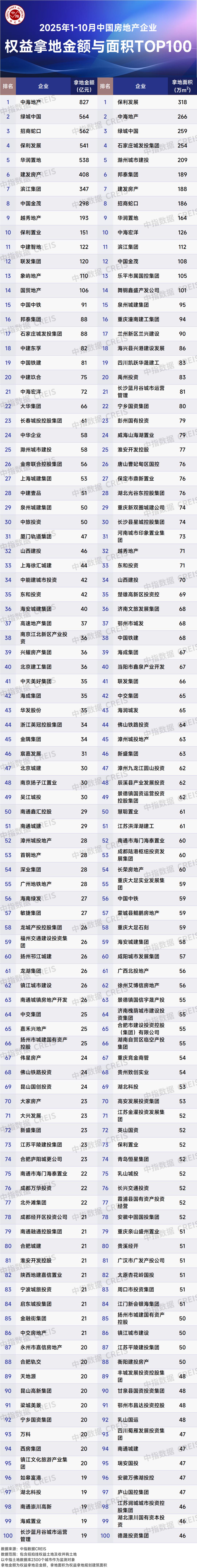 | 34 | 中能建城市投资 | 42 | 34 | 山西建投 | 70 | | --- | --- | --- | --- | --- | --- | | 35 | 东和投资 | 42 | 35 | 楚雄高新区投资控 | 69 | | 36 | 海安城建集团 | 40 | 36 | 济南文旅发展集团 | ୧୫ | | 37 | 高速地产集团 | 37 | 37 | 鄂州市城发 | 68 | | 38 | 南京江北新区产业投 奖 | | 38 | 中国铁建 | 68 | | 39 | 兴耀房产集团 | 36 | 39 | 海成集团 | | | 40 | 北京建工集团 | 36 | 40 | 当阳市鑫泉产业开发 | 67 | | 41 | 中天美好集团 | 35 | 41 | 联发集团 | 66 | | 42 | 海成集团 | 35 | 42 | 中交集团 | ୧୧ | | 43 | 华发股份 | 35 | 43 | 海润城发 | ୧୧ | | 44 | 浙江英冠控股集团 | 34 | 44 | 佛山铁路投资 | | | 45 | 金隅集团 | 34 | 45 | 漳州城投地产 | 63 | | 46 | 宸嘉 ...