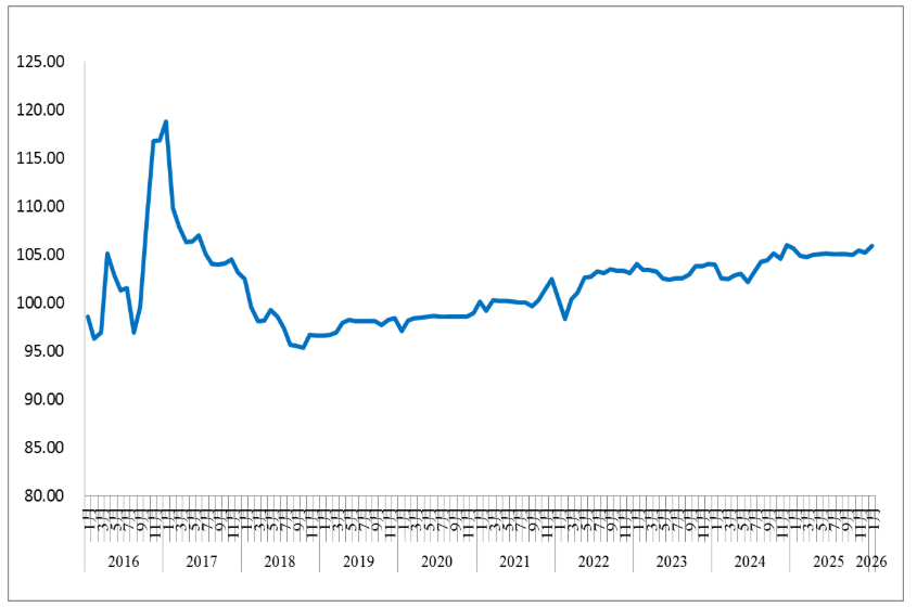中国物流与采购联合会:1月中国公路物流运价指数为105.9点 同比回升0.19%