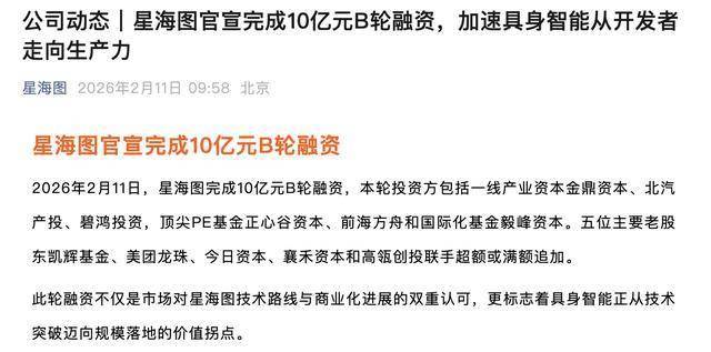 获10亿元B轮融资,星海图成新年首只百亿具身独角兽