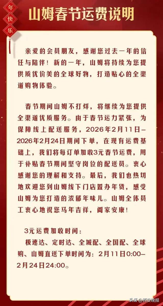 山姆、盒马、叮咚集体通知:春节调价!网友表示理解