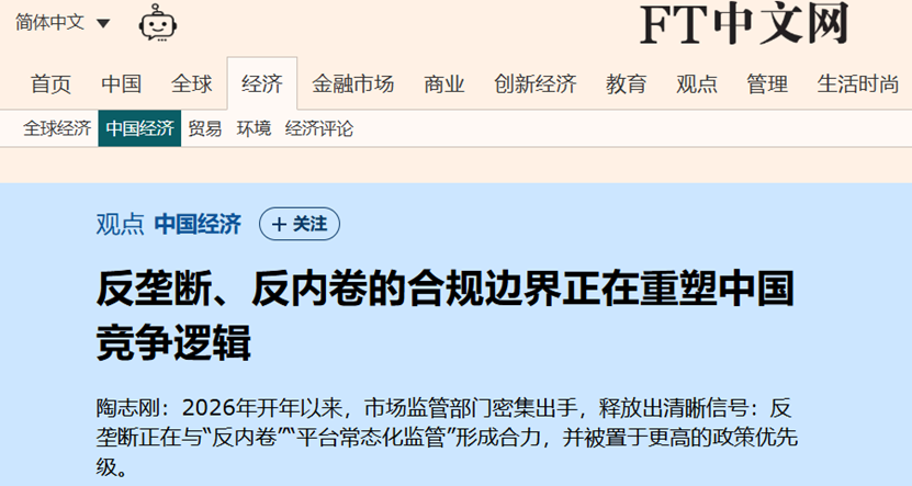 反垄断措施密集出台,《金融时报》发文称正重塑中国竞争逻辑