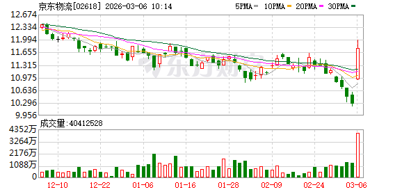 港股京东物流盘中涨超16%