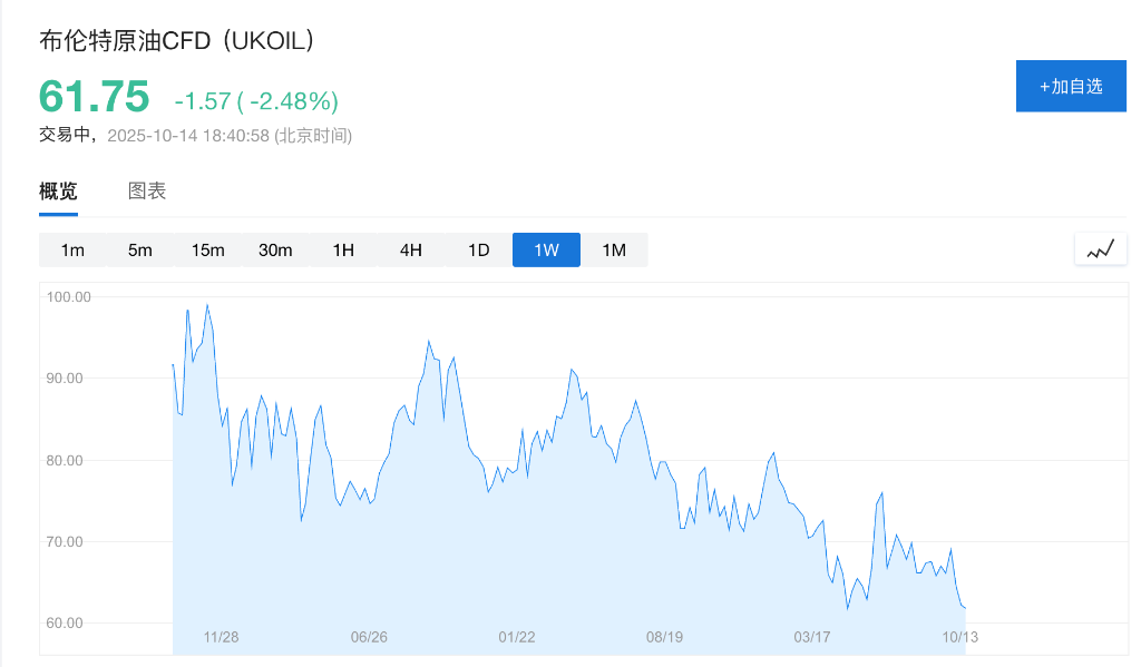 周二(10月14日)深夜,美股集体低开,原油续跌。黄金在短线调整后已经止跌回升。 事关降息,美联储再次发声: 美联储理事鲍曼认为美国消费支出有所走弱,预计在年底前还将有两次降息。他还表示,监管应聚焦于重大风险,将在接 下来一周左右公布更多压力测试方案,美联储正在就稳定币监管要求征求意见。 国际货币基金组织(IMF)14日发布最新一期《世界经济展望报告》,预计2025年世界经济将增长3.2%,较今年7月预测值上调0.2个百分点;2026年将增 长3.1%,与7月预测值持平。 截至发稿,纳斯达克指数跌超1%。 | 名称 | 现价 | 涨跌 | 涨跌幅 | | --- | --- | --- | --- | | 道琼斯工业平均 | 45701.59 -365.99 | | -0.79% | | 纳斯达克指数 | 22357.96 -336.65 | | -1.48% | | 标普500 | 6591.68 | -63.04 | -0.95% | 超威半导体(AMD)逆势拉升,最新涨幅为2.48%。据CNBC消息,甲骨文云将于2026年下半年开始部署5万颗AMD AI芯片。 | स्त्री | 多日 1分 5分▼ ...