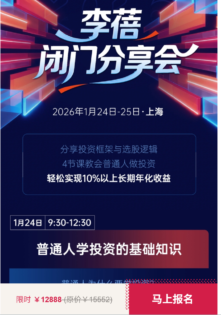 推出12888元套餐但"不指望靠这个赚钱" 面对市场的广泛关注与讨论,李蓓于次日在半夏投资公众号对课程进行了详细说明。她首先澄清动机,直 言这门课程是"人生中的一个意外",并非规划之中的业务,其PPT也是现成的;她强调并不是要开辟知识 付费的收入第二曲线,并不指望靠这个赚钱,"知识付费这个领域,每年变现最高的估计也就千万。大家 都知道,我不缺几千万。"初衷源于一些偶然的好感与责任心,也希望借此对自己的投资框架进行一次系 统的再思考与返璞归真的总结。 每日经济新闻消息,近日,知名私募基金经理李蓓再度引发市场关注。 12月26日,她通过个人公众号高调宣布,将推出名为"从0开始学投资"的系列课程,定价高达12888元,远 超普通知识付费产品,迅速在金融圈刷屏,将其与掌舵的半夏投资推向风口浪尖。 流量明星基金经理的跨界争议 关于课程的具体安排与后续计划,李蓓介绍,课程形式包含四次线下授课,每次含2小时讲课与1小时答 疑,并支持按需单次购买。课程内容将被录制成线上版本,并将与中信出版社合作整理成书——她解释, 选择线下授课正是为了能高效、低时间成本地完成一本书的产出。她特别强调,本次课程将是唯一一次系 统性线下课,不会 ...