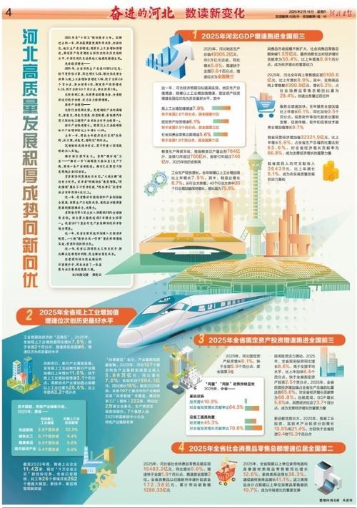 宏观经济表现 - 2025年全省实现生产总值49305.2亿元,按不变价格计算同比增长5.6%,增速居全国第3位 [1] - 2025年全省规模以上工业增加值同比增长7.9%,增速快于全国2.0个百分点,居全国第6位 [1] - 2025年全省固定资产投资同比增长6.1%,增速快于全国9.9个百分点,居全国第3位 [1] - 地区生产总值、规模以上工业增加值、固定资产投资增速的全国位次均为历史最好水平 [2] 产业结构与行业发展 - 先进钢铁产业向高端化、智能化、绿色化发展,轻型轮毂、新能源汽车用无取向电工钢等产品市场占有率全球第一 [3] - 规模以上工业战略性新兴产业增加值比上年增长11.0% [4] - 雄安新区已汇聚空天信息领域企业60余家,首颗“雄安造”卫星“雄安一号”生产下线 [6] - 京津冀协同发展推动“六链五群”建设,“河北净菜”在北京市场占有率保持在40%以上 [6] - 全省107个重点特色产业集群已实现共享智造全覆盖 [6] 科技创新与新质生产力 - 京西智行等5家企业入围胡润2025全球独角兽榜 [6] - 全省综合算力指数连续2年排名全国第一 [6] - 推动科技创新和产业创新融合发展,新质生产力起势成势 [6] 营商环境与市场活力 - 全面实施市场准入负面清单制度 [6] - 一大批“高效办成一件事”重点事项落地实施,营商环境持续优化 [6]