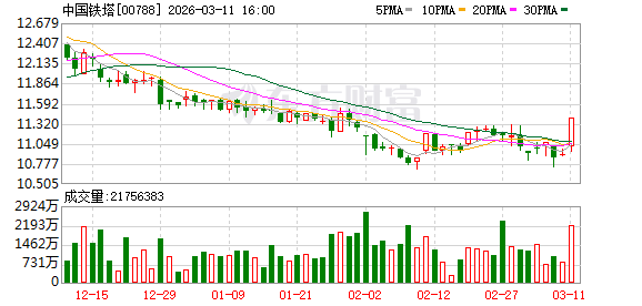 摩根大通减持中国铁塔约953.51万股 每股作价约11.58港元