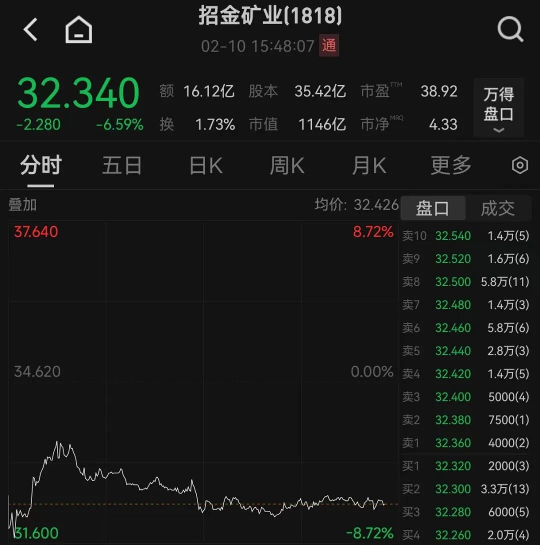 千亿黄金股盘中大跌8% 旗下金矿坠罐事故致7人死亡,企业涉嫌瞒报 包括矿长在内的11人已被控制!企业最新回应→