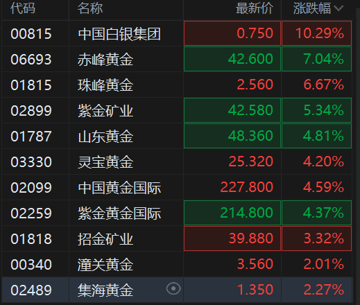 金银价格新高,港股黄金股强势,灵宝黄金、紫金矿业等多股创新高
