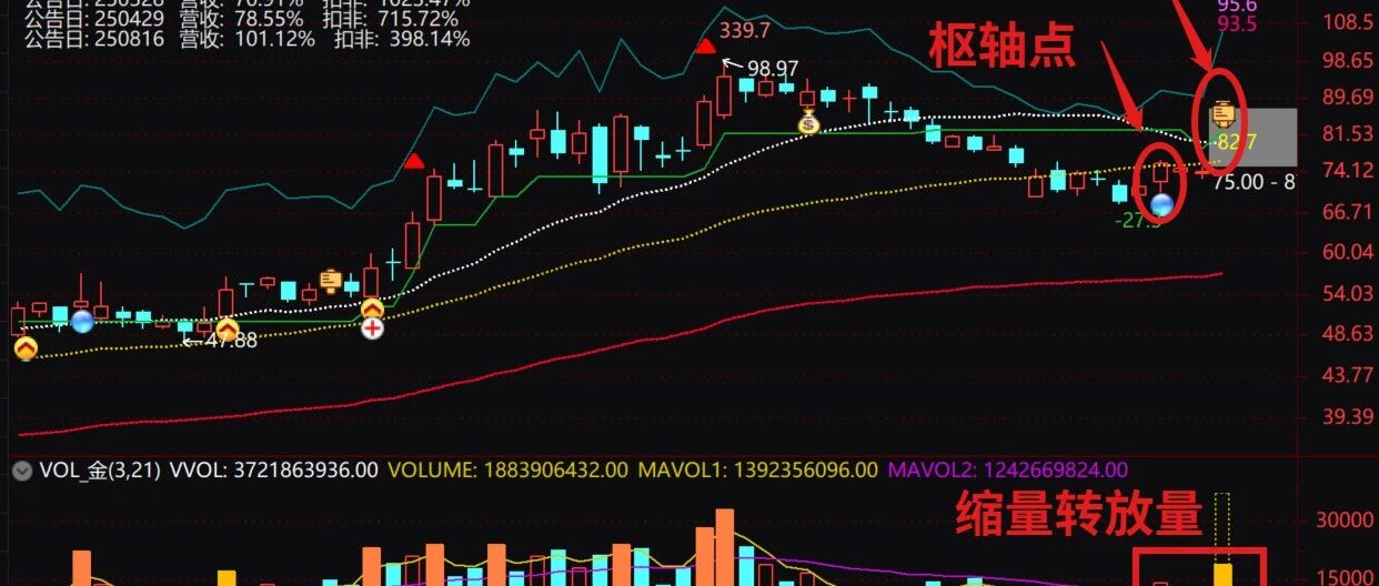 我还发现有朋友在反复阅读几篇旧文,似乎很有感悟和感慨,应该是非常应景当下的局面,可以印证猛兽股的演绎路径和辨识特征: 产业锚定2:轮动泡泡下的主线生长 五年猛兽股总结——趋势的真相 五年猛兽股——基底形态和支点 方正科技,在地量信号之后出现枢轴点信号,是胜率比较高的优质信号组合。本次回撤幅度20.3%,符合猛兽股优质基底标准。 半导体这块,继上次给出源杰之后,再添加两个经典图例: 主板这块,大家要密切注意有色最近的快速缩量,陆续出现一些地量信号,以及今天个别还在地量之后出现枢轴点。可能意味着,主板这块后续行情仍然 会是有色挑大梁: 晶瑞电材,本次回撤幅度17.1%,属于非常优质的基底浅回撤。今天季报断层+昨日的地量信号,是比较确定的反转枢轴信号。 江波龙,一个高窄平底之后,今天超量突破,平底结构中出现过两次堆量骑牛信号,强势延续。 周二的文章: 今天这批领涨股的信号 这些天我一直在思考:假如说当下回撤结束,行情延续的主线是谁呢?现在似乎已经有答案了。 PCB这块,继上次给出胜宏之后,再添加两个典型图例: 生益电子,本次回撤幅度27.3%,符合猛兽股优质基底标准,今天三季报跳空,走势反转契机非常好。 周二我们用 ...