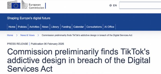 TikTok被认定存在“上瘾式”设计,欧盟:设置“屏幕使用休息”机制,禁用“无限滚动”,不改就巨额罚款,回应:调查结果完全错误