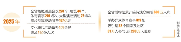 去年海南接待游客1.06亿人次 接待入境游客超150万人次,同比增长35.2% 海南日报海口1月22日讯(海南日报全媒体记者 刘晓惠 通讯员 李艺娜 实习生 周涵佳)2025年全省接待 国内外游客1.06亿人次,同比增长9.1%;其中接待入境游客150.05万人次,同比增长35.2%,接待入境过夜游 客594.29万人夜,同比增长59%;游客总花费2254.32亿元,同比增长10.5%。旅游迈入"游客量超1亿人次、总 花费超2000亿元"新阶段,旅游高质量发展成效显著。这是记者从1月21日召开的2026年全省旅游和文化广电 体育工作会议上获悉的。 | | 全省招揽引进会议270个、展览44个、 体育赛事279场次、大型演艺活动27场次 | 全省博物馆累计接待观众突破600万人次 | | --- | --- | --- | | 2025年 | 初步测算拉动消费167亿元 | 举办群众体育赛事319场 | | | 文化惠民活动举办1万余场 | 吸引超32个国家及地区 | | | 惠及1亿多人次 | 31万人参与、超200万人观赛 | 旅游不仅是"看风景",更与文化、体育、商业、会展、演艺等深度融合,创造了丰富的消 ...