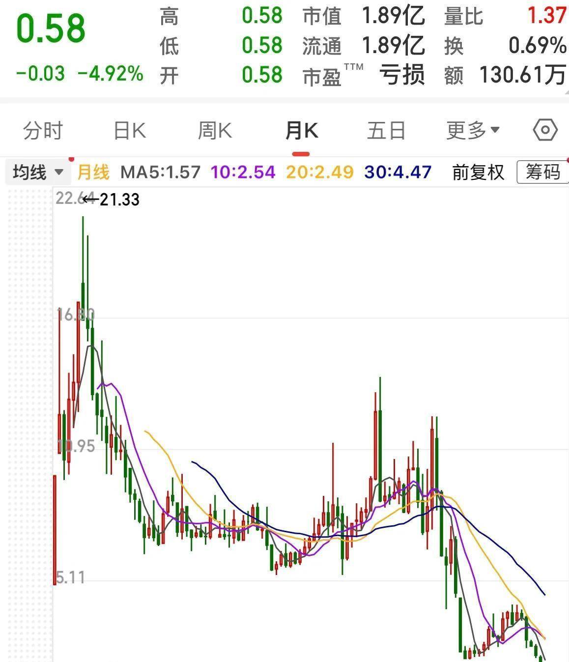 太惨了,从上市跌到退市,最后一天封死跌停,股价锁定0.58