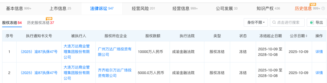 法律诉讼与纠纷 - 王健林及大连万达集团因合同纠纷被海南万骏管理服务有限公司起诉,案件将于11月3日在上海市第二中级人民法院开庭审理 [1] - 大连万达集团及其所属企业今年以来发生多起法律诉讼,公司及法定代表人王健林曾于9月28日被限制高消费,该限高令次日被取消 [4] - 截至目前,大连万达集团有49条股权冻结信息及10条被执行人信息,被执行总金额约52.63亿元人民币,历史被执行金额约90.30亿元人民币 [4] 公司财务状况与债务压力 - 截至2024年9月,大连万达商管一年内到期的短期债务超过439亿元人民币,而货币资金仅为151亿元人民币,流动性压力巨大 [4] - 公司面临与苏宁易购、融创、永辉等昔日合作伙伴的债务仲裁,多重压力下经营承压明显 [4] 资产出售与流动性缓解 - 为缓解流动性危机,公司频繁出售资产,包括将万达酒店管理公司100%股权以24.9亿元人民币出售给同程旅行,以及将快钱金融30%股权以2.4亿元人民币出售给中国儒意 [5] - 今年以来已有7座万达广场被零散出售,2023年至2024年间据不完全统计已出售超30座万达广场 [5] - 截至2023年底,公司在全国227座城市开业498座万达广场,2024年新开业25个 [5] 相关方股权结构 - 起诉方海南万骏管理服务有限公司由万科旗下深圳市盈达投资基金管理有限公司持股70%,由珠海横琴万骏投资集团有限公司持股30% [3] - 大连万达集团股份有限公司由大连合兴投资有限公司及王健林共同持股,王健林为实际控制人 [4]