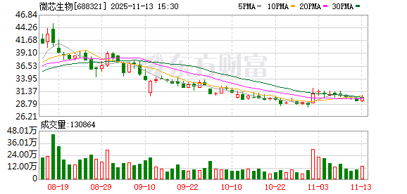 微芯生物现9笔大宗交易 合计成交118.10万股