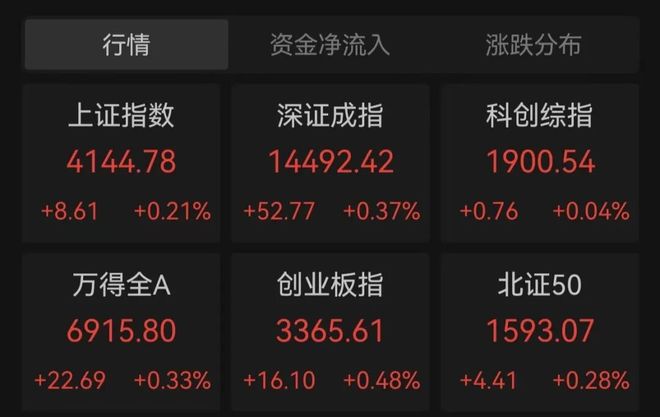 市场开盘表现 - A股三大股指集体高开,沪指涨0.21%至4144.78点,深成指涨0.37%至14492.42点,创业板指涨0.48%至3365.61点 [1] - 科创综指涨0.04%至1900.54点,北证50涨0.28%至1593.07点,万得全A涨0.33%至6915.80点 [2] - 港股恒生指数高开0.35%至26844.04点,恒生科技指数涨0.05%至5801.15点 [3][4] A股行业与概念板块动态 - 光伏产业链再度走强,太空光伏概念股领涨 [1] - 太空光伏概念股大幅高开,明阳智能、拓日新能、协鑫集成、钧达股份、双良节能封涨停,东方日升、欧普泰、奥特维、连城数控高开超10% [2] - 黄金、锂矿、人形机器人、AI应用题材表现活跃 [1] - 商业航天概念股出现局部回调 [1] 港股个股开盘表现 - 泡泡玛特股价上涨超过4%,紫金矿业上涨接近3% [3] - 腾讯音乐、京东健康股价涨幅靠前 [3] - 百度集团、小鹏汽车、蔚来股价跌幅靠前 [3]