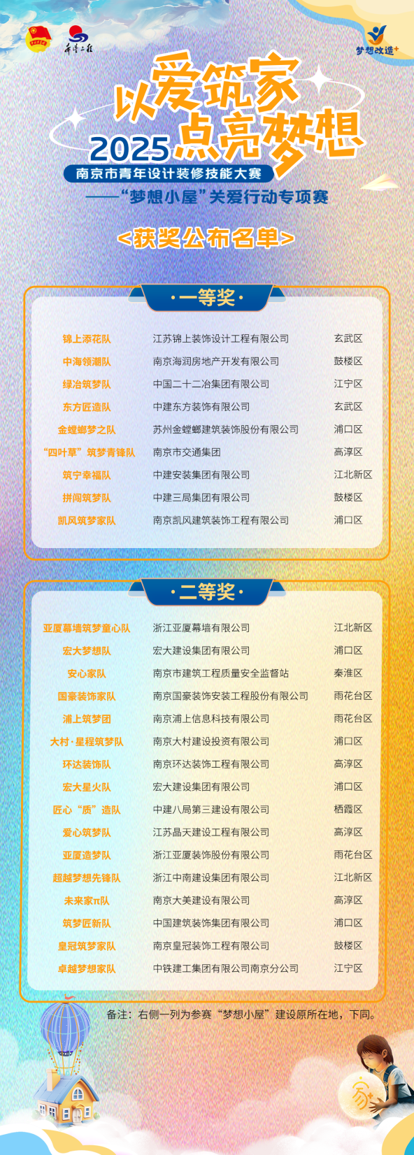 2025年南京市青年设计装修技能大赛——“梦想小屋”关爱行动专项赛结果公布