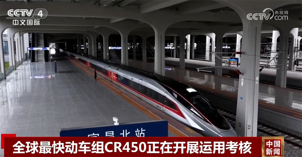 央视网消息:被称作"全球最快高铁"的CR450动车组样车去年底公布后,目前正在不同速度、不同场景中进行多项试验。试验期间, CR450动车组跑出了动车组单列时速453公里、相对交会时速896公里的最新纪录。目前,CR450动车组正在沪渝蓉高铁开展运用考核。来看总 台央视记者20日在宜昌北站试验现场发回的报道。 什么是"运用考核"?简单说就是"刷里程"。从去年底样车下线以来,CR450就一直在进行各种达标考试,经过一轮一轮的周测、月考、期 中考,已经交出了时速450公里的答卷,各项指标都已经合格,但是考试还得继续,因为按照技术要求,CR450要在指标合格的前提下跑够60 万公里,才能够载客运营。 所以目前,宜昌北站这里依然是考场,我们先用此前拍摄的画面复盘一下近期它的考场表现。 每天从记者现在所在的宜昌北站出发,CR450在途经荆门站、终点汉川站这条近300公里的高铁线上折返跑。这也是记者第一次近距离接 触运行中的CR450动车组,在此前的试验中,虽然它成绩一直不错,但遗憾的是记者并没有在场,20日来到现场依然不能登车,因为按照国家 铁路局的规定,列车要拿到载客许可证才能够允许非专业人士登车,所以目前记者也只能 ...