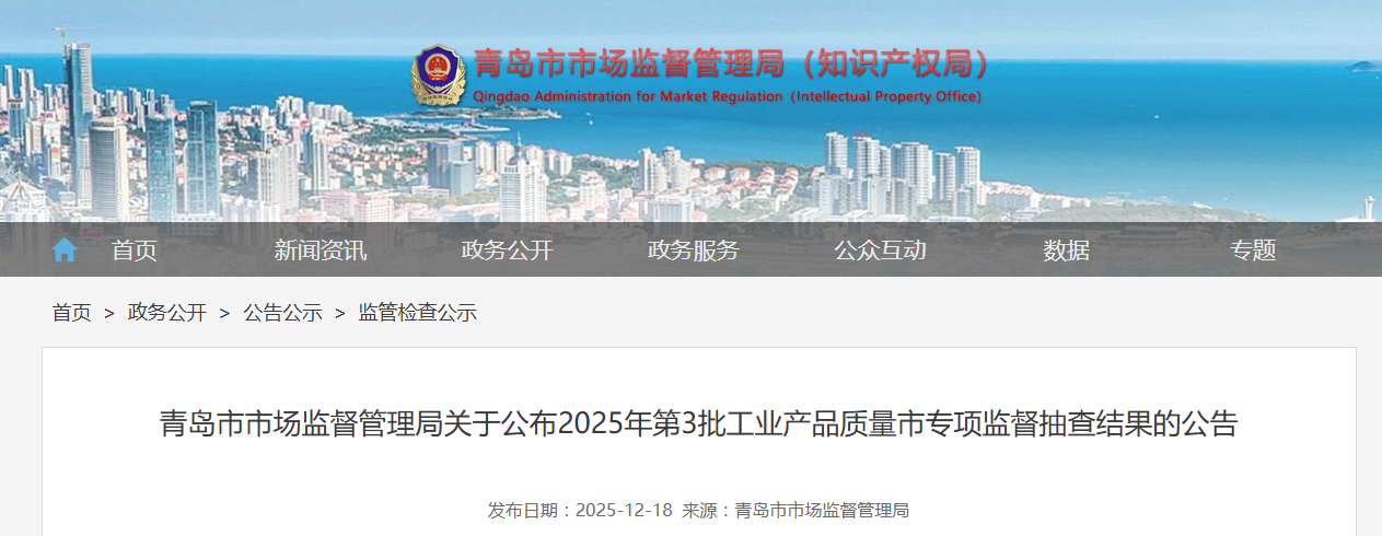 青岛市市场监督管理局公布水泥产品抽查结果