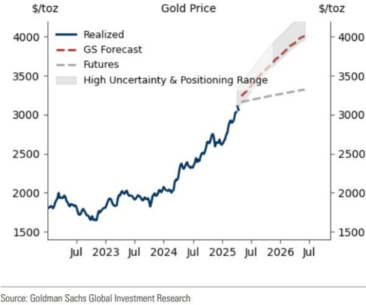 金价走势与预测 - 高盛预计金价到2025年底将上涨至每盎司3700美元,到2026年年中达到每盎司4000美元 [1] - 瑞银预计到2025年12月金价将达到每盎司3500美元 [1] - 金价上周飙升6.6%,周一突破3245美元创下新纪录 [1] 黄金需求驱动因素 - 高盛预计央行部门平均每月可能购买约80吨黄金,高于此前估计的70吨 [3] - 瑞银预计央行、长期资产管理公司、宏观基金、私人财富和散户投资者等细分市场将出现强劲需求 [3] - 衰退风险上升可能促使资金流入黄金支持的交易所交易基金(ETF) [3] 资金流入与价格催化 - 高盛分析师认为若美国经济衰退发生(概率45%),ETF资金流入可能加速并将金价在年底前推高至每盎司3880美元 [3] - 近期资金流入上升反映了投资者对冲衰退风险和风险资产价格下跌的新需求 [3] - 黄金头寸占基金总资产的比例有可能超过2020年水平 [3] 市场结构与流动性 - 市场仓位尚未过度拥挤,因此仍有进一步增持黄金的空间 [3] - 自2008年金融危机以来黄金投资者的基础已经扩大 [3] - 流动性状况变弱可能放大金价走势,部分原因是矿山供应增长有限以及大量黄金被央行储备和ETF持有 [4]