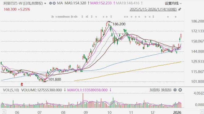 港股异动丨阿里大涨超5%,据报阿里云2026年目标是拿下中国AI云市场增量的80%