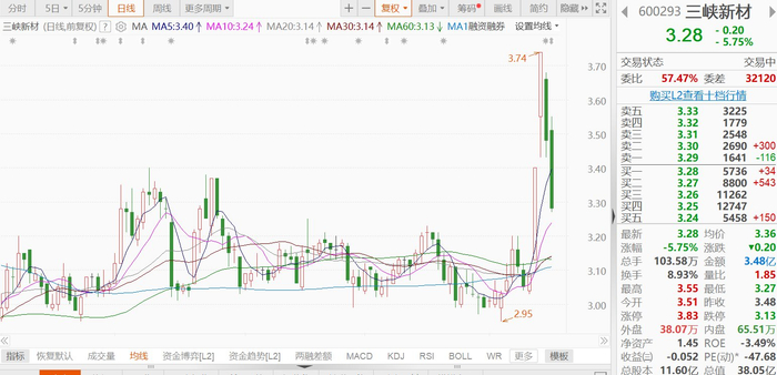 A股异动丨三峡新材跌近6%,三季度净亏损3286.09万元