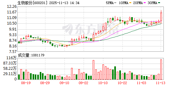生物股份成交额创2021年7月9日以来新高