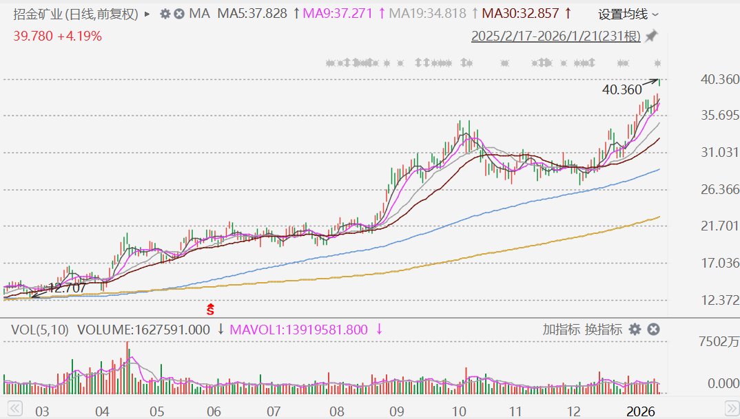 港股异动丨招金矿业涨近6%创历史新高,市值突破1400亿