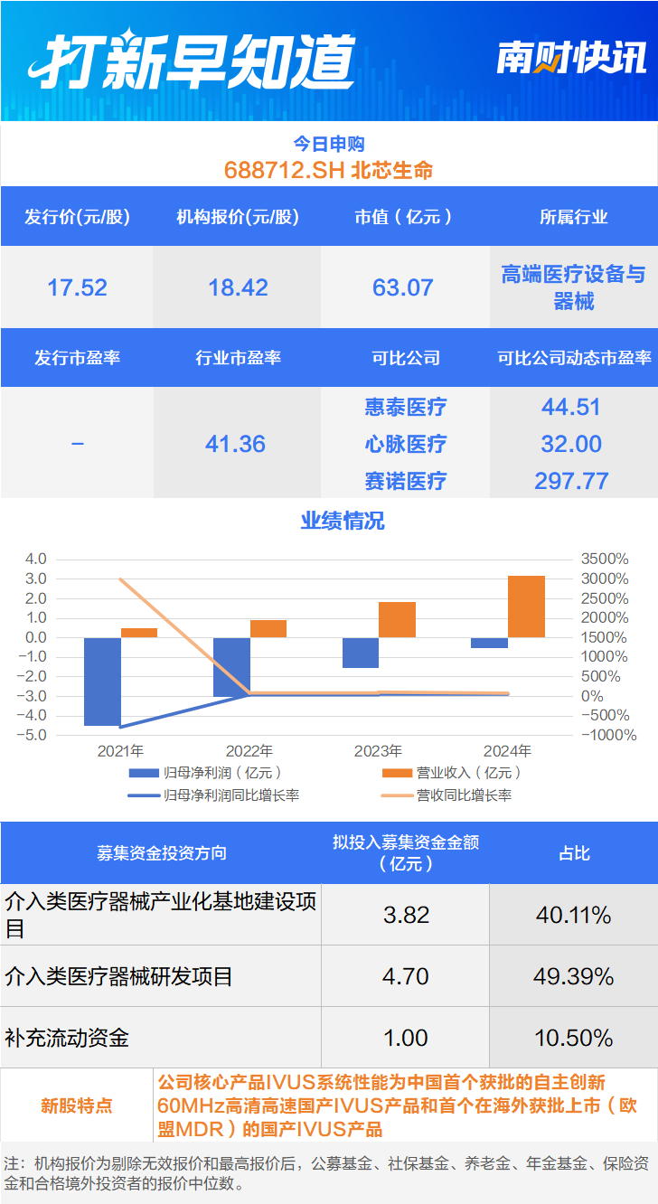 每经AI快讯,1月26日有1只新股申购,为科创板的北芯生命;无新股上市。北芯生命是国内领先的心 血管精准诊疗创新医疗(002173)器械企业。 ...